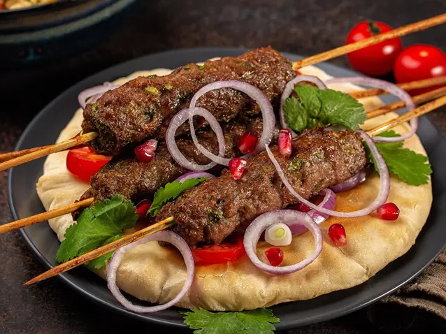 Succulent skewers of minced meat blended with authentic spices, grilled to perfection over charcoal for a smoky, juicy, and flavorful taste that captures the essence of Middle Eastern cuisine